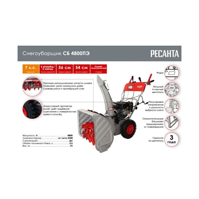 Снегоуборщик бензиновый Ресанта СБ 4800ПЭ 70/7/33