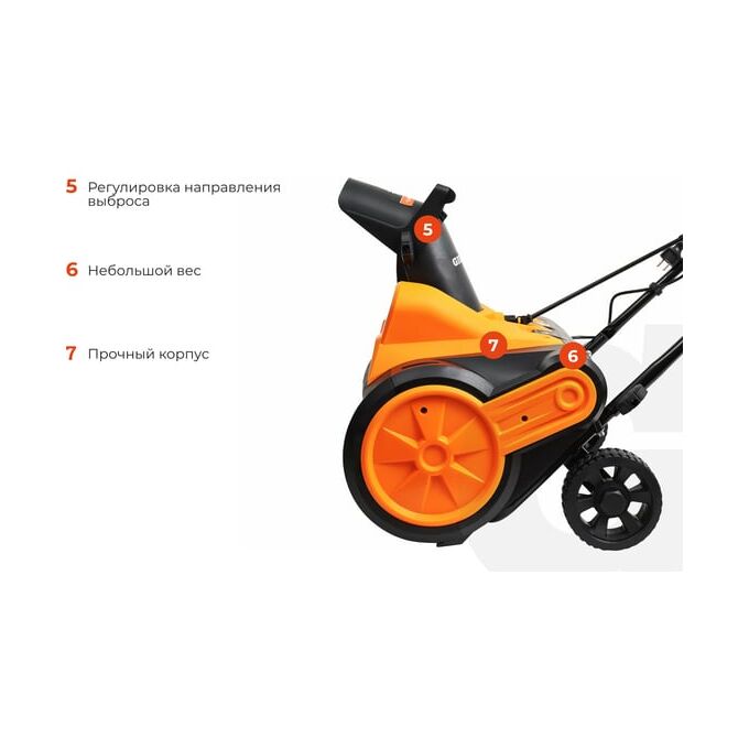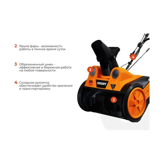 Электрический снегоуборщик Gigant SP-2300-460ES - легкий и компактный агрегат для очистки поверхностей с твердым покрытием.