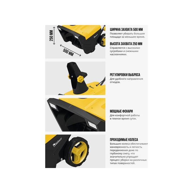 Мощный двигатель 2500 Вт — эффективно справляется с уборкой снега различной плотности