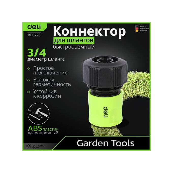 Соединитель Deli DL8795 быстросъемный для шланга 3/4" ударопрочный пластик