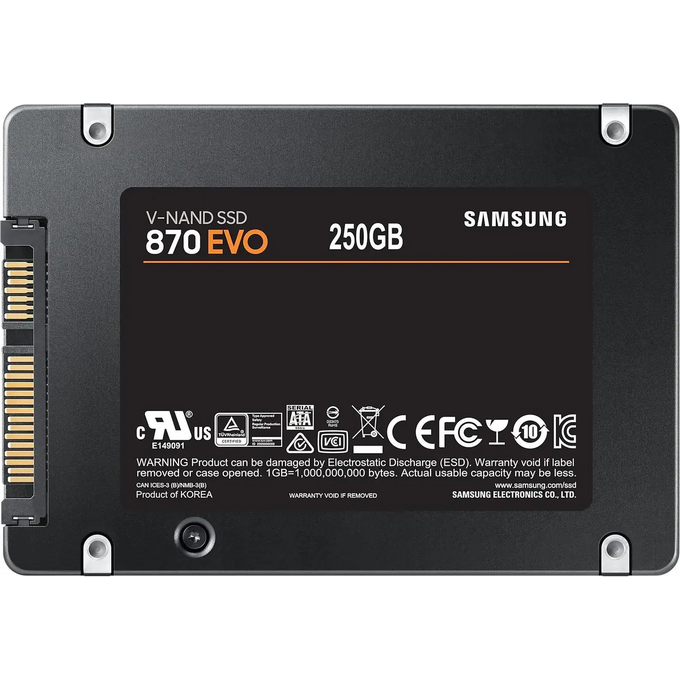 SSD Samsung 870 Evo MZ-77E250B/AM 2.5" 250GB SATA 6Gb/s, 560/530, IOPS 98/88K, MTBF 1.5M 3D NAND TLC, 512MB