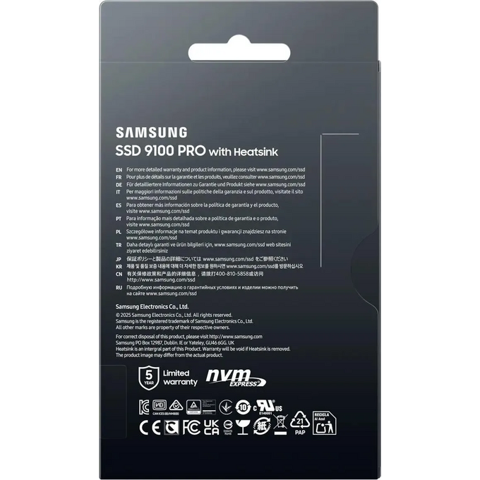 SSD Samsung 9100 Pro 4Tb (MZ-VAP4T0CW) M.2 2280, PCI-E 5.0 x4, 3D TLC, 14800/13400Mbs, 2400TBW, DRAM 4Gb, heatsink