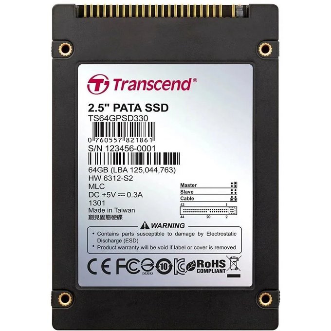 SSD Transcend 330 (TS64GPSD330) 64 Гб, 2.5" PATA MLC, темп. режим от 0С до +70С