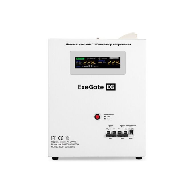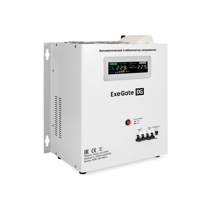 Стабилизатор напряжения Exegate Master AV-20000 EX291765RUS настенный 20000ВА, вход 140-260В, цветной дисплей, выход 220В±8%, КПД 98%