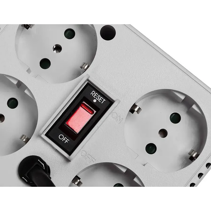 эффективность до 95%, потребляемая мощность менее 10 Вт, варистор для защиты от всплесков напряжения, стабилизация выходного напряжения +/- 5%, индикатор включения, индикатор пониженного напряжения, индикатор повышенного напряжения, все розетки оборудованы заземлением