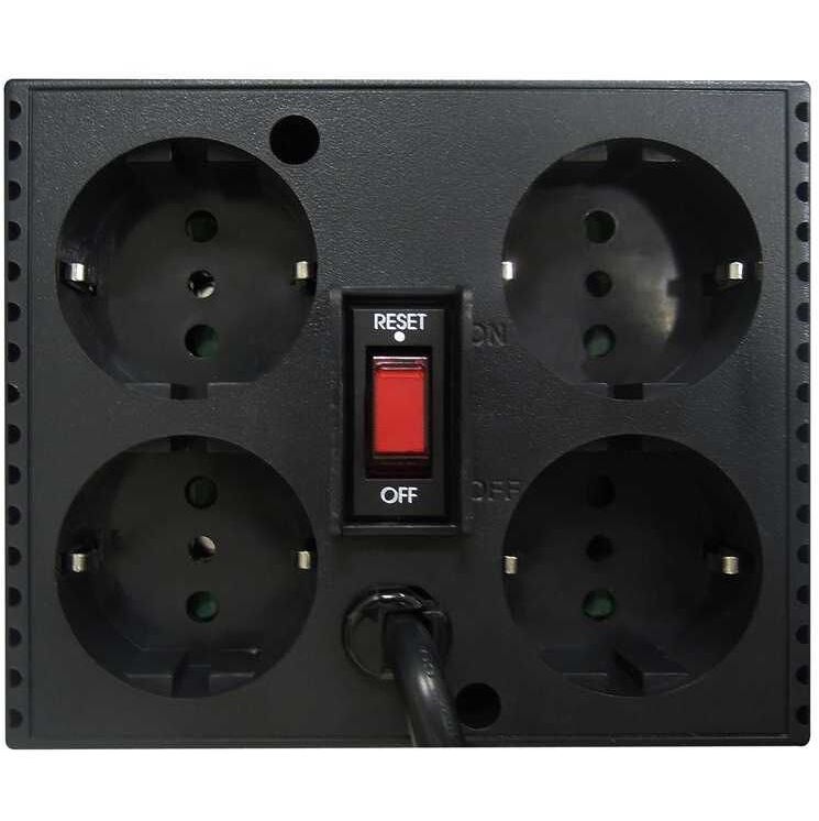 Особенности эффективность до 95%, потребляемая мощность менее 10 Вт, варистор для защиты от всплексов напряжения, стабилизация выходного напряжения +/- 5%, индикатор включения, индикатор пониженного напряжения, индикатор повышенного напряжения, все розетки оборудованны заземлением