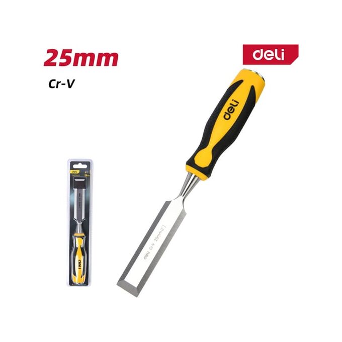 Стамеска плоская Deli DL6225-E1 ширина 25мм, длина 140мм, CrV, прорезиненная рукоять