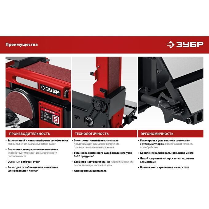 Преимущества станка шлифовального ЗУБР СШЛ-550