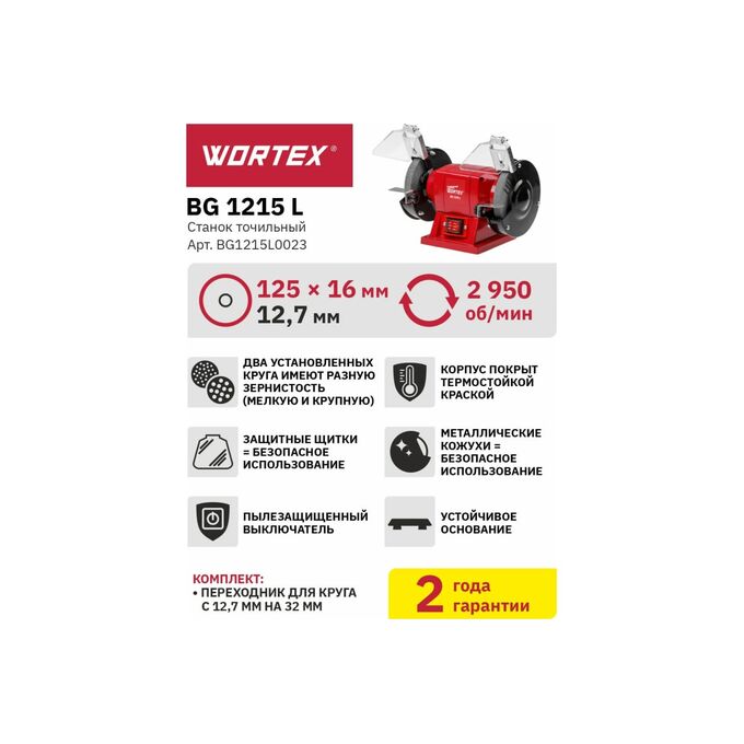 Станок точильный WORTEX BG 1215 L (BG1215L0023) в кор. (150 Вт, круг 125х16х13 мм)