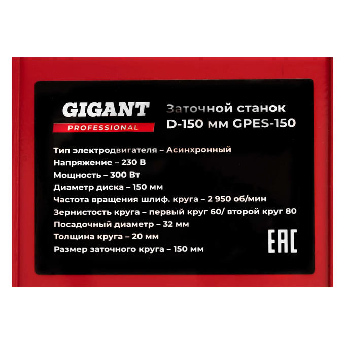 Заточной станок Gigant Professional D-150мм GPES-150 используется для заточки, а также шлифовки металлических заготовок и режущего инструмента.