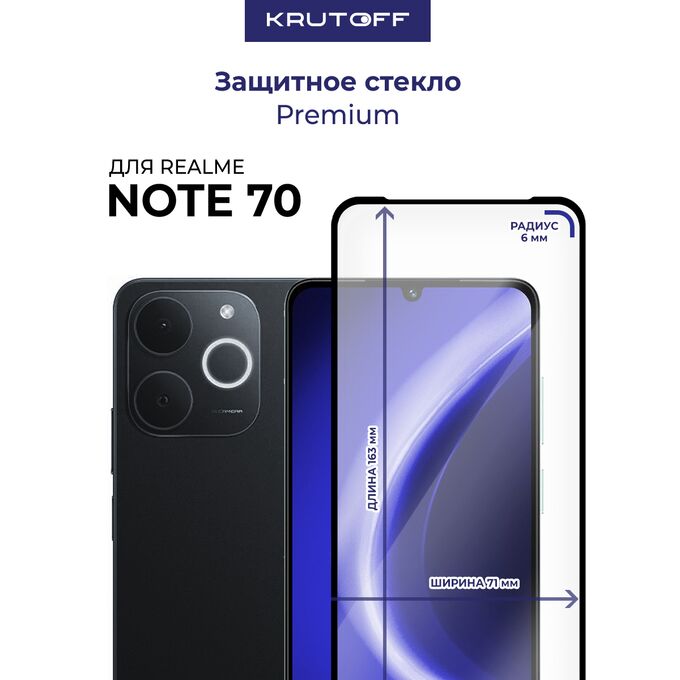 Стекло защитное Full Glue Premium Krutoff для Realme Note 70 черное