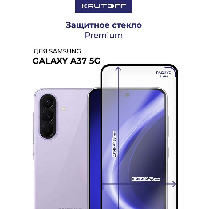Стекло защитное Full Glue Premium Krutoff для Samsung Galaxy A37 черное