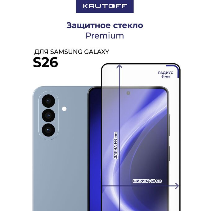 Стекло защитное Full Glue Premium Krutoff для Samsung Galaxy S26 черное