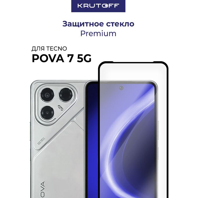Стекло защитное Full Glue Premium Krutoff для TECNO Pova 7 5G черное