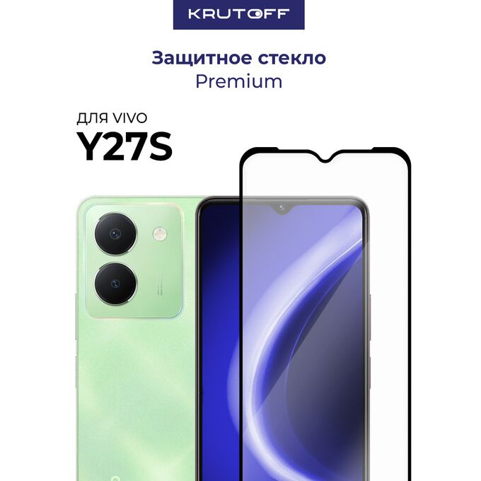 Стекло защитное Full Glue Premium Krutoff для Vivo Y27s черное