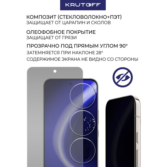 Сохранив гибкость защитной пленки, гибридное стекло намного удобнее обычного закаленного стекла - как при транспортировке, так и при установке. Оно тоньше, прочнее и надежно защищает экран от повреждений. Стекло антишпион не только защитит телефон от механических повреждений, но и скроет экран вашего смартфона от любопытных взглядов. Благодаря специальному свойству, изображение на экране видно только под прямым углом. Со стороны экран будет выглядеть как при выключенном дисплее. Стекло имеет отступы по 1 мм от края дисплея для удобства ношения защитного чехла. Имеет высокую степень устойчивости к царапинам, обеспечивает хорошую чувствительность к касанию и не влияет на сенсорный отклик по всей поверхности дисплея. Гибридное стекло идеально прозрачное, не снижает четкость и яркость изображения, не меняет оригинальную цветопередачу экрана. Изготовлено из гибкого композиционного материала (стекловолокно и ПЭТ). Является гибким и не растрескивается, а края не крошатся, как у обычного закаленного стекла. Защищает от пыли, грязи, брызг и царапин. Верхний слой из стекловолокна по тактильным ощущениям близок к стеклу и не влияет на работу сенсора по всей поверхности экрана. Полная проклейка поверхности (Full Glue). Специальная смесь высококачественных клеев гарантирует установку без пузырьков воздуха и что стекло не отслоится с течением времени. Внимание! Гибридное стекло поставляется в двух защитных транспортировочных пленках (на тыльной и лицевой стороне). Данные пленки могут быть поцарапаны. После наклеивания стекла снимите защитную синюю пленку "2" с лицевой стороны!