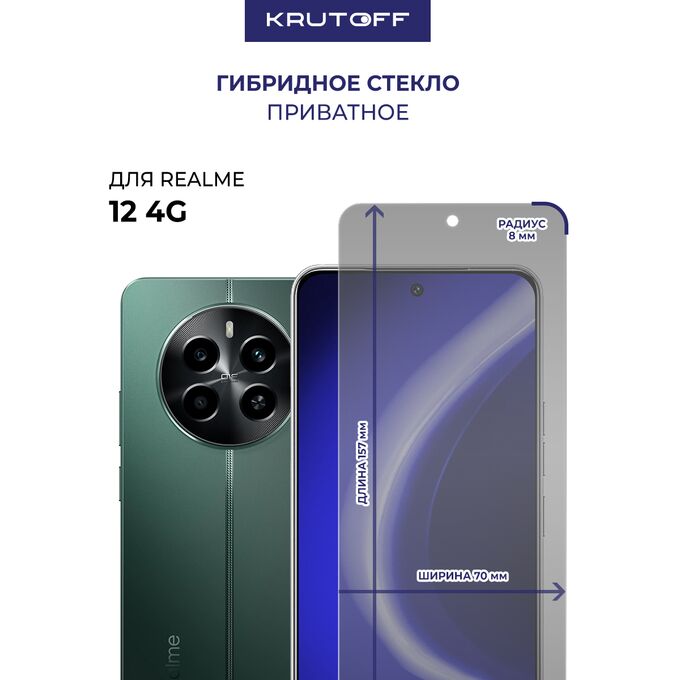 Стекло защитное гибридное Антишпион Krutoff для Realme 12 4G