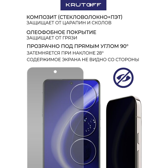 Сохранив гибкость защитной пленки, гибридное стекло намного удобнее обычного закаленного стекла - как при транспортировке, так и при установке. Оно тоньше, прочнее и надежно защищает экран от повреждений. Стекло антишпион не только защитит телефон от механических повреждений, но и скроет экран вашего смартфона от любопытных взглядов. Благодаря специальному свойству, изображение на экране видно только под прямым углом. Со стороны экран будет выглядеть как при выключенном дисплее. Стекло имеет отступы по 1 мм от края дисплея для удобства ношения защитного чехла. Имеет высокую степень устойчивости к царапинам, обеспечивает хорошую чувствительность к касанию и не влияет на сенсорный отклик по всей поверхности дисплея. Гибридное стекло идеально прозрачное, не снижает четкость и яркость изображения, не меняет оригинальную цветопередачу экрана. Изготовлено из гибкого композиционного материала (стекловолокно и ПЭТ). Является гибким и не растрескивается, а края не крошатся, как у обычного закаленного стекла. Защищает от пыли, грязи, брызг и царапин. Верхний слой из стекловолокна по тактильным ощущениям близок к стеклу и не влияет на работу сенсора по всей поверхности экрана. Полная проклейка поверхности (Full Glue). Специальная смесь высококачественных клеев гарантирует установку без пузырьков воздуха и что стекло не отслоится с течением времени. Внимание! Гибридное стекло поставляется в двух защитных транспортировочных пленках (на тыльной и лицевой стороне). Данные пленки могут быть поцарапаны. После наклеивания стекла снимите защитную синюю пленку "2" с лицевой стороны!