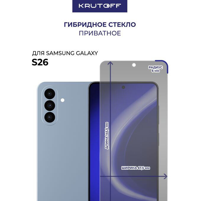 Стекло защитное гибридное Антишпион Krutoff для Samsung Galaxy S26