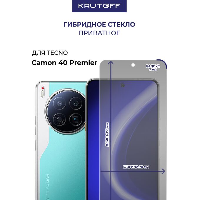 Стекло защитное гибридное Антишпион Krutoff для TECNO Camon 40 Premier