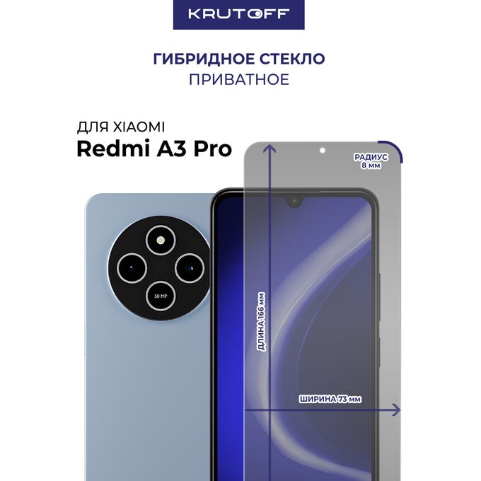 Стекло защитное гибридное Антишпион Krutoff для Xiaomi Redmi A3 Pro