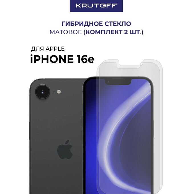 Комплект из 2-х защитных гибридных стекол МАТОВЫХ Krutoff для iPhone 16e