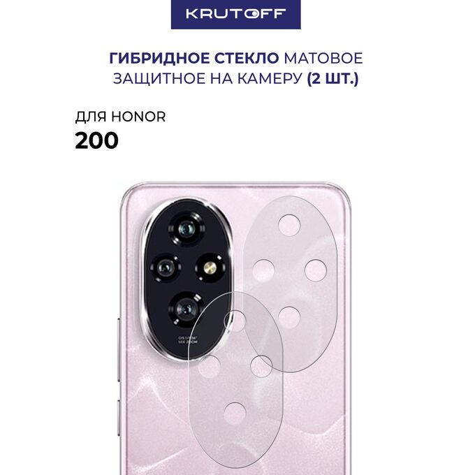 Стекло защитное гибридное МАТОВОЕ Krutoff для камеры Honor 200 (2шт.)