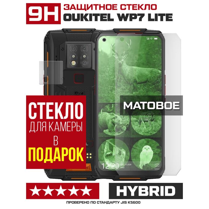 Стекло защитное гибридное МАТОВОЕ Krutoff для Oukitel WP7 Lite + защита камеры (2 шт.)