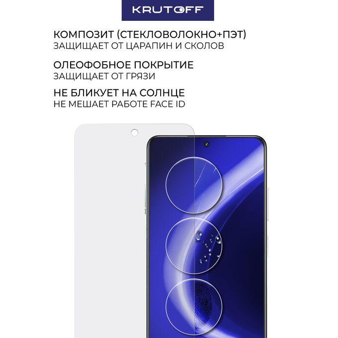Сохранив гибкость защитной пленки, матовое гибридное стекло намного удобнее обычного закаленного стекла - как при транспортировке, так и при установке. Оно тоньше, прочнее и надежно защищает от повреждений. Стекло имеет высокую степень устойчивости к царапинам. Гибридное стекло идеально прозрачное. Изготовлено из гибкого композиционного материала (стекловолокно и ПЭТ). Является гибким и не растрескивается, а края не крошатся, как у обычного закаленного стекла. Защищает от пыли, грязи, брызг и царапин. Верхний слой из стекловолокна по тактильным ощущениям близок к стеклу. Полная проклейка поверхности (Full Glue). Специальная смесь высококачественных клеев гарантирует установку без пузырьков воздуха и что стекло не отслоится с течением времени. Внимание! Гибридное стекло поставляется в двух защитных транспортировочных пленках (на тыльной и лицевой стороне). Данные пленки могут быть поцарапаны. После наклеивания стекла снимите защитную синюю пленку "2" с лицевой стороны!
