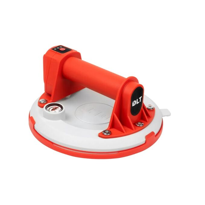 Присоска DLT VST-100 оснащена встроенным электрическим насосом, датчиком давления и манометром давления для визуального контроля. Датчик давления в VST-100 анализирует силу разрежения воздуха и автоматически включает насос, когда требуется восстановить необходимые параметры вакуума (автоматическая подкачка).