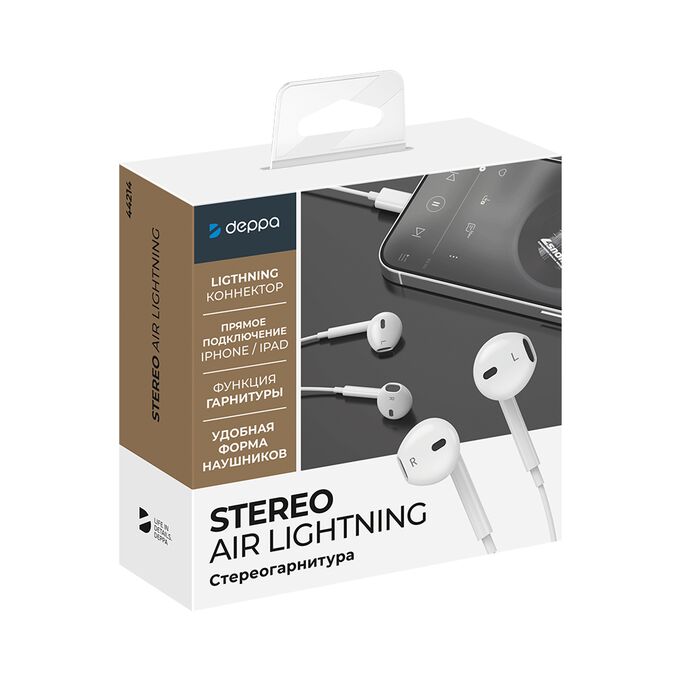 Стереогарнитура Stereo Air Lightning, белый, Deppa