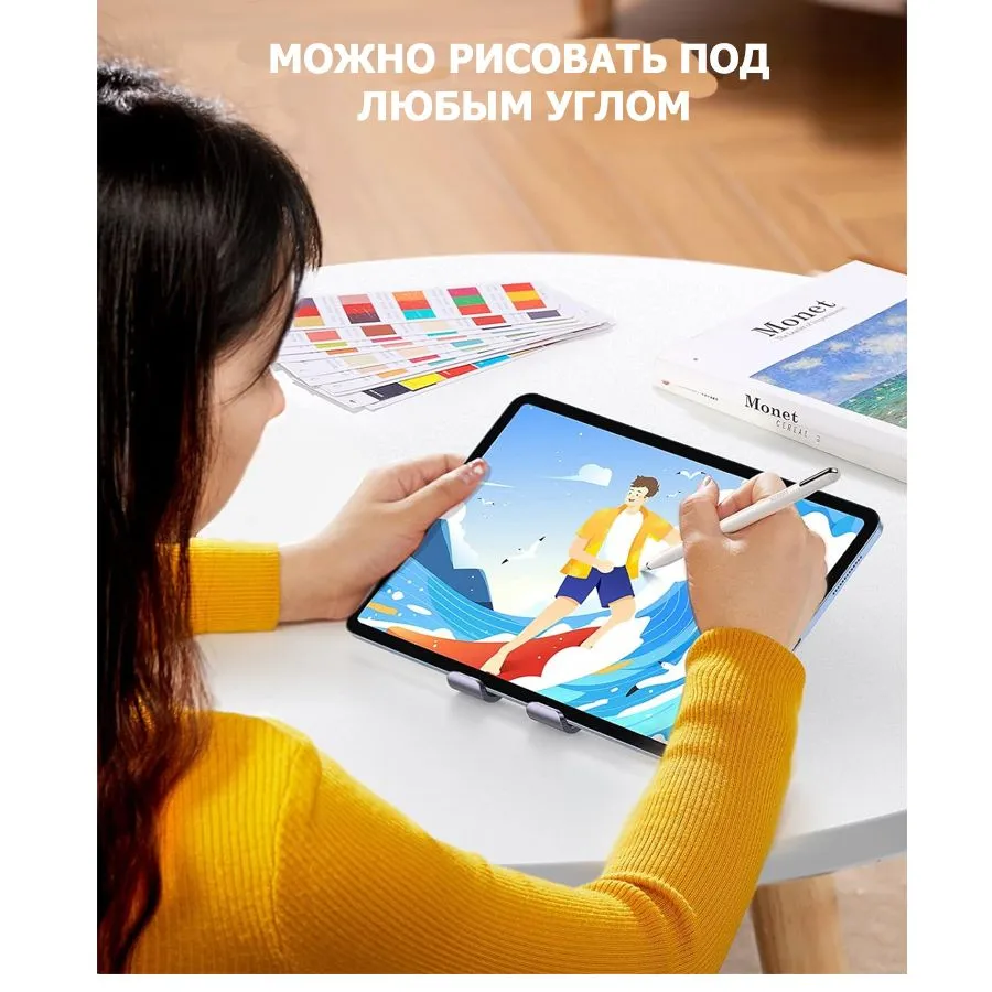 UGREEN LP452 – это стилус с магнитной зарядкой, совместимый с iPad Pro 12,9/11 дюймов (3-го/4-го/5-го поколения), iPad Air 4-го/5-го поколения, iPad Mini 6-го поколения и iPad 8-го/9-го поколения. Основные характеристики: Магнитная зарядка: Стилус заряжается магнитным образом, что удобно и практично. Чувствительность к наклону: Стилус поддерживает функцию наклона, позволяя вам создавать различные эффекты штриховки. Функция отторжения ладони: Стилус автоматически распознает вашу ладонь и не оставляет следов на экране. Сменные наконечники: Стилус поставляется с двумя сменными наконечниками, что увеличивает срок его службы. Длительное время автономной работы: Стилус может работать до 20 часов без подзарядки. Другие преимущества: Легкий и удобный Бесшумный Быстрое подключение Поддержка Bluetooth UGREEN LP452 – это отличный стилус для тех, кто хочет рисовать, делать заметки или просто более удобно работать с iPad.