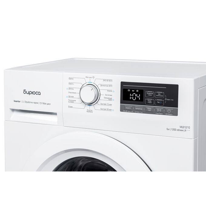 Основные программы Хлопок, Деликатная 20 ºC, Синтетика, Смешанные ткани, Шерсть, Быстрая 59/15 мин, Отжим, Полоскание и отжим