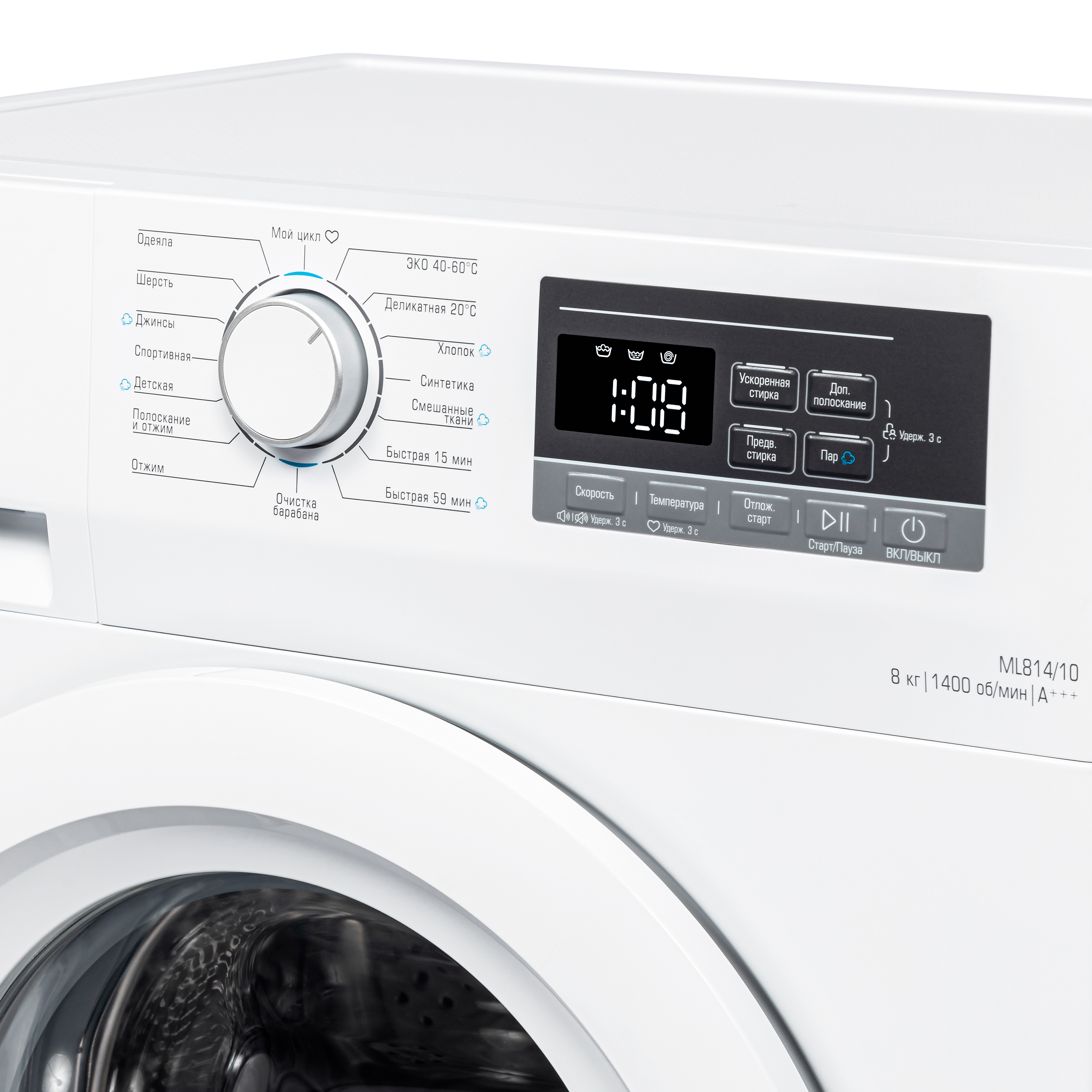 Дополнительные функции Выбор скорости отжима, Выбор температуры, Обработка паром, Предварительная стирка, Дополнительное полоскание, Блокировка от детей, Ускоренная стирка, Отложенный старт, Отключение звукового сигнала