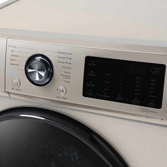 Программы стирки: Стирка изделий из хлопка, Стирка смешанных тканей, Экономичная стирка, Стирка деликатных тканей, Стирка детской одежды, Стирка изделий из синтетики, Быстрая стирка, Стирка спортивной одежды, Стирка изделий из шерсти, Полоскание + отжим, Отжим, Интенсивная стирка, Предварительная стирка, Ночная стирка, Настраиваемый режим стирки, Слив, Стирка одеял