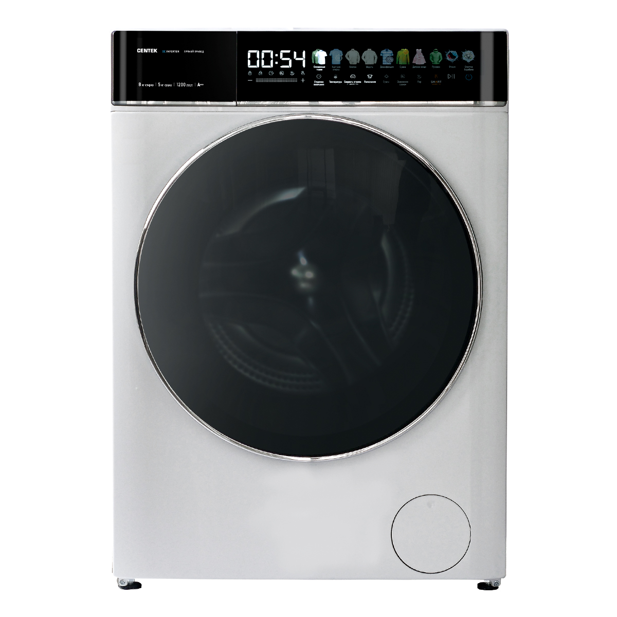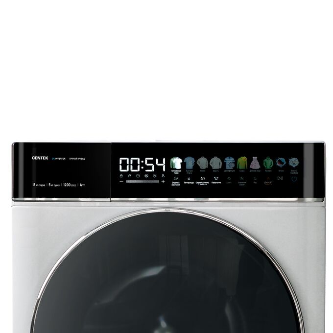Стиральная машина Centek CT-1966 (белый) 1200/8кг/52см/Прямой привод/Цветной сенсор/Сушка 5кг/A+++