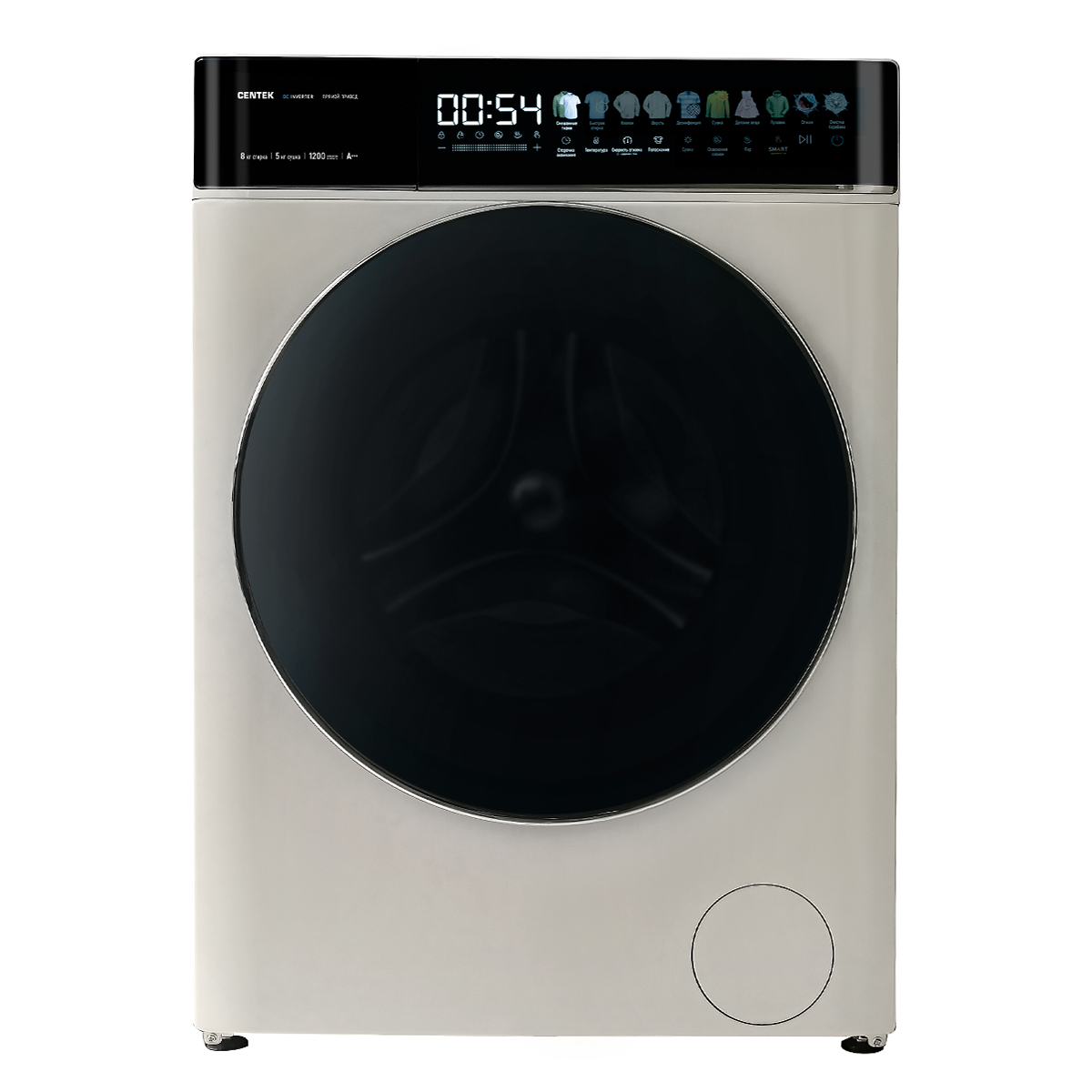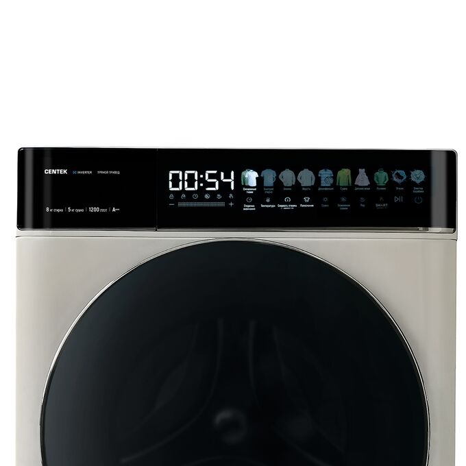 Стиральная машина Centek CT-1968 (бежевый) 1200/8кг/52см/Прямой привод/Цветной сенсор/Сушка 5кг/A+++