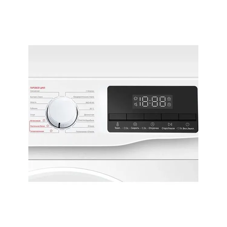 Программы стирки: Быстрая стирка, Интенсивная стирка, Стирка изделий из шерсти, Стирка рубашек, Стирка спортивной одежды, Удаление пятен, Полоскание + отжим, Отжим