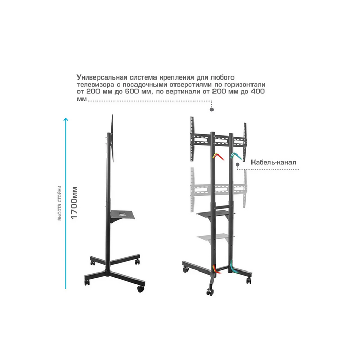 Стойка для телевизора Kromax Omega-15 черный 32"-70" макс.50кг напольный мобильный
