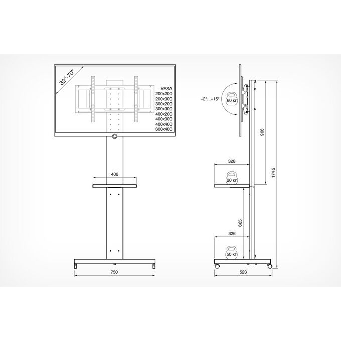 Мобильная стойка для ТВ и аудио- видеоаппаратуры, которая идеально подойдет как для домашнего использования, так и для офисов, торговых центров и спортивных сооружений. Кронштейн на стойке регулируется в 7 положениях по высоте с шагом в 5 см для удобного расположения ТВ.