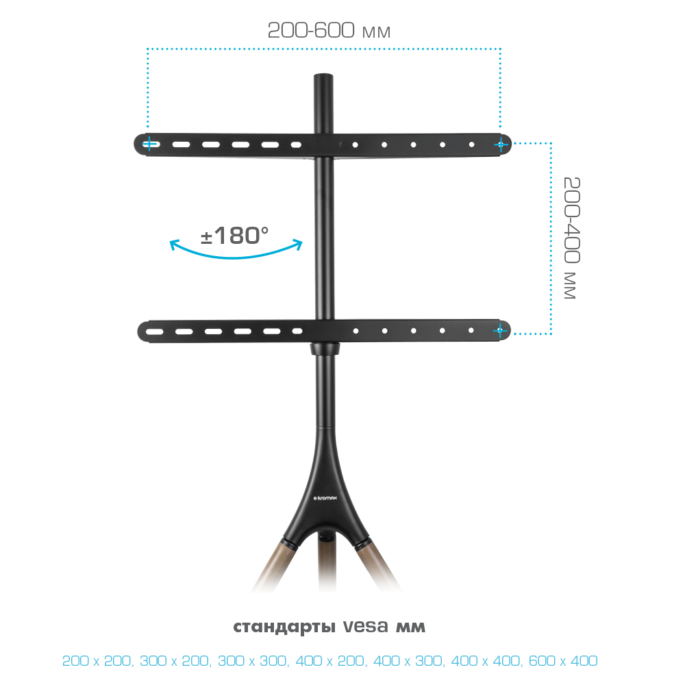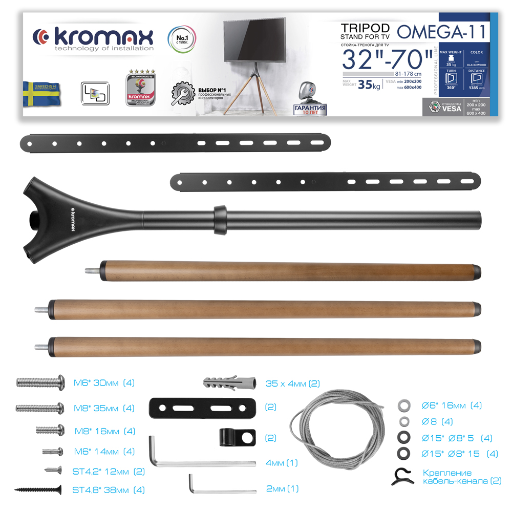 KROMAX OMEGA-11 гарантированно закрепит и удержит устройства с диагональю 32"-70" и весом 35 кг. Простая конструкция KROMAX OMEGA-11 идеально подойдет для самостоятельного монтажа. Мощная конструкция мобильной стойки позволяет надёжно удерживать дорогостоящее оборудование, а легкие материалы конструкции дают возможность плавно перемещать стойку в нужное вам место.