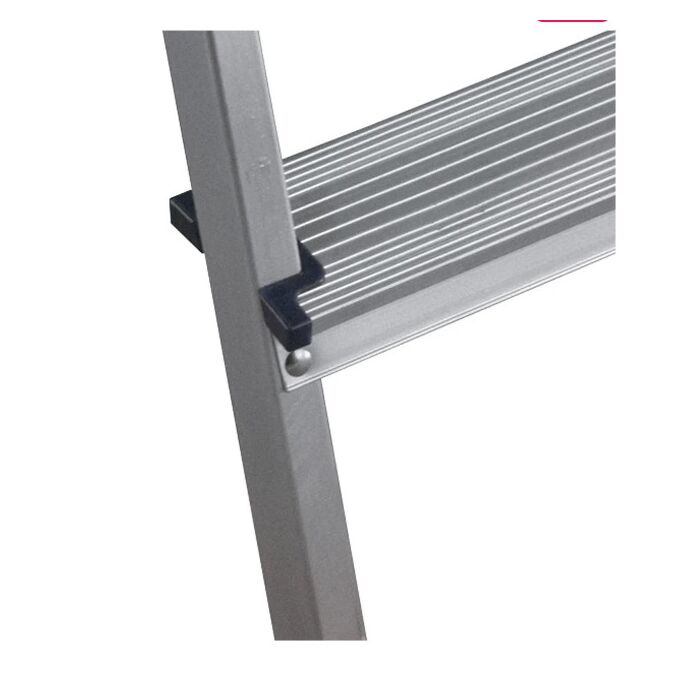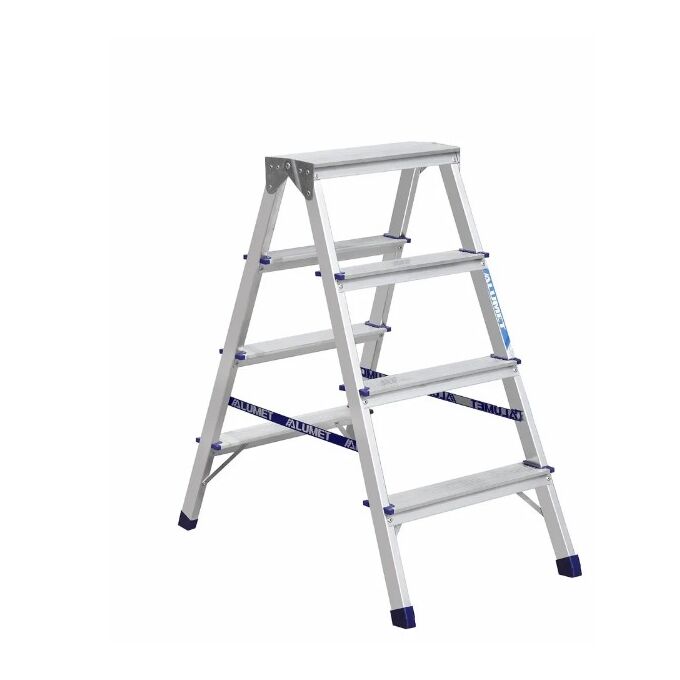 Алюминиевая двухсторонняя стремянка, две верхние ступени которой образуют ровную широкую площадку, на которой можно стоять или хранить инструменты. Фиксируется двумя крепкими ремнями. Подходит для бытового использования. Преимущества:- Благодаря своим компактным размерам, стремянку удобно хранить и транспортировать- Пластиковые наконечники придают стремянке отличную устойчивость, а пластиковые заглушки по бокам ступеней защищают работника от порезов- Ступени надёжно закреплены заклёпками к боковинам, гарантируя высокую грузоподъёмность стремянки- Широкие рифлёные ступени препятствуют случайному соскальзыванию ног во время проведения работ