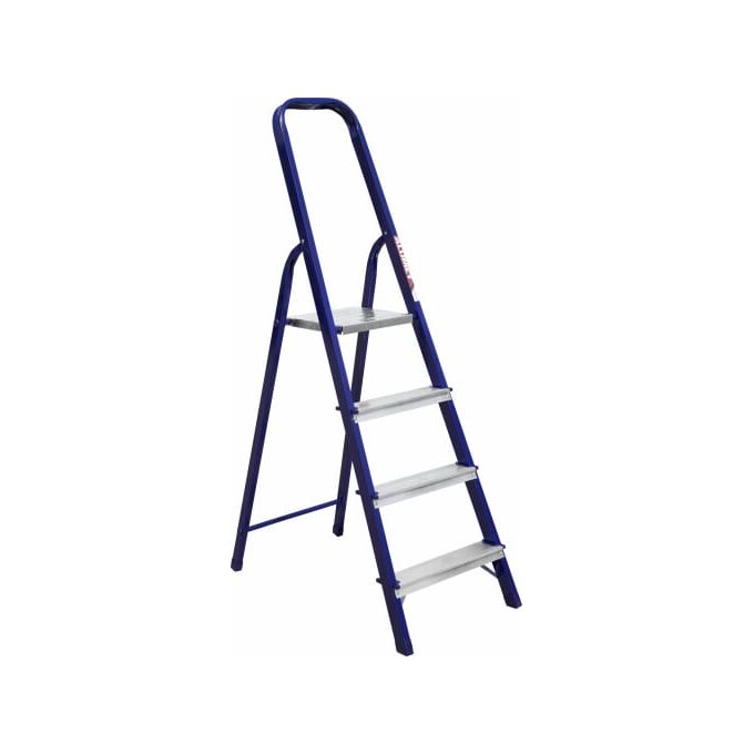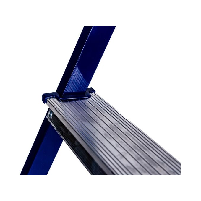 Стальная стремянка Алюмет М8304 выполнена из прямоугольного профиля и окрашена синей полимерной краской. Эта модель рассчитана на высокую нагрузку, обеспечивает хорошую устойчивость как всей конструкции, так и каждой ступеньки по отдельности. Ступени выполнены из алюминия, имеют специальное рифление, что снижает вероятность скольжения во время работы. Применяется в быту и строительной области.