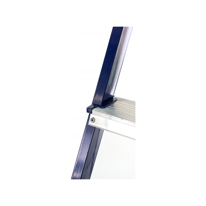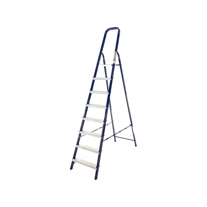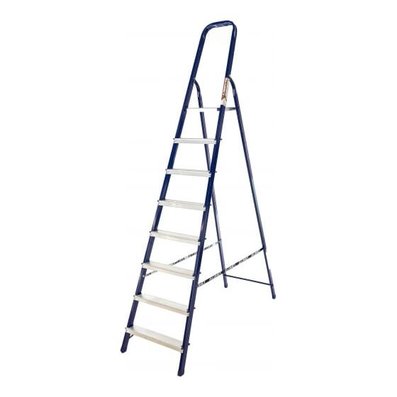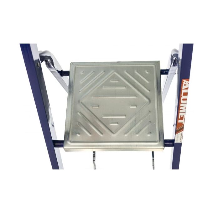 Стальная стремянка Алюмет М8408 выполнена из прямоугольного профиля и окрашена синей полимерной краской. Эта модель рассчитана на высокую нагрузку, обеспечивает хорошую устойчивость как всей конструкции, так и каждой ступеньки по отдельности. Ступени выполнены из алюминия, имеют специальное рифление, что снижает вероятность скольжения во время работы. Прочный страховочный ремень предотвращает выход стремянки из рабочего положения, что обеспечивает безопасную работу на верхних ступенях. Применяется в быту и строительной области.