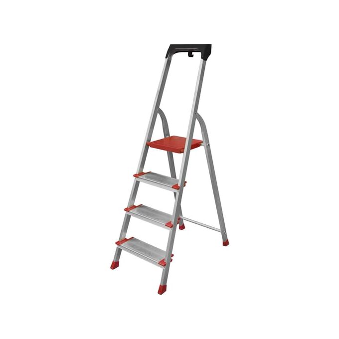 Свободностоящая стремянка Gigant 4 ступеней, PROFI AAA-03 имеет большие противоскользящие наконечники, профилированные ступени шириной 125 мм - для безопасного спуска/подъёма.