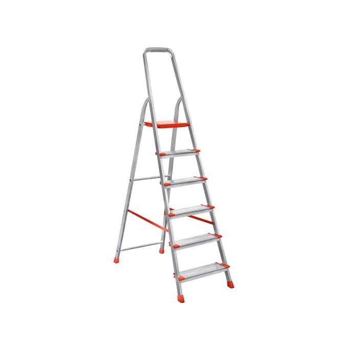 Стремянка Gigant 6 ступеней с шириной 130 мм, PROFI AAA-12 имеет высокую дугу безопасности (600 мм). Cтраховочные ремни - безопасная эксплуатация. Широкие ступени глубиной 130 мм. Опорные пластиковые наконечники против скольжения. Рифленые ступени и площадка - безопасный подъём и спуск. Прочное крепление ступеней к боковинам 6 заклепками - отличная устойчивость. Cтупени и стойки изготовлены из прессованных алюминиевых профилей увеличенного сечения, площадка - из прочного композитного материала.