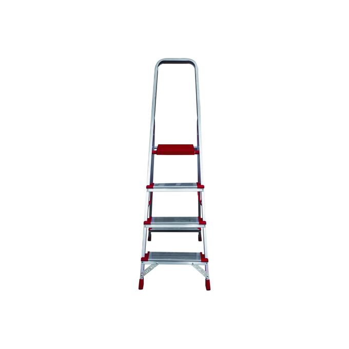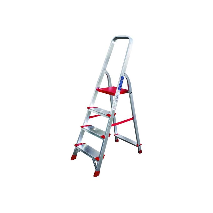Стремянка Новая высота 4 ступени с шириной 130 мм 5110104 отличается высоким уровнем безопасности, так как снабжена широкими ступенями с рифленой поверхностью, наконечниками против скольжения и высокой дугой безопасности. Большая площадка позволяет пользователю комфортно работать на высоте. Модель выполнена из качественных материалов, имеет надежное клепальное соединение ступеней с профилем, что обеспечивает долгий срок службы.