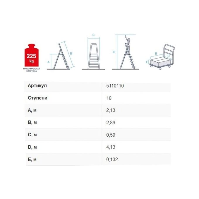 2.Высокая прочность стремянки Новая высота 10 ступеней с шириной 130 мм 5110110;
