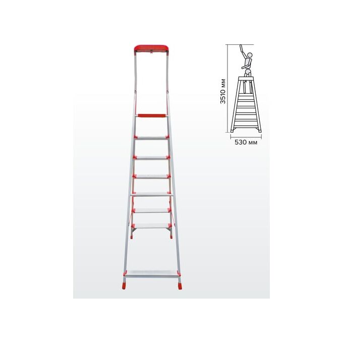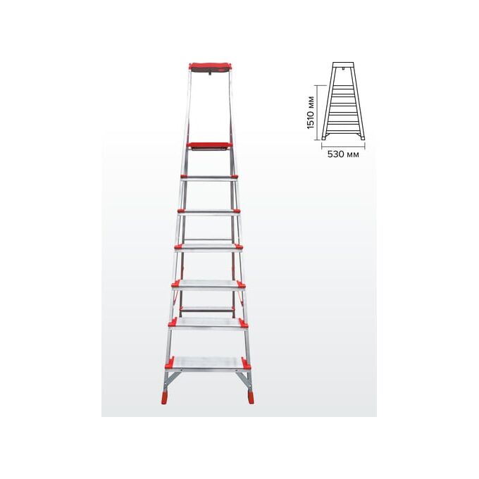 Стремянка Новая Высота Профессиональная NV 3118 (3118107) 1x7 ступеней 130 мм, органайзер, Max нагр. 225 кг, 2К башмаки