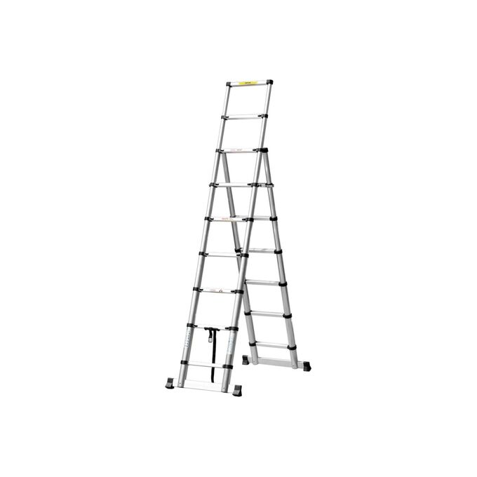 Телескопическая стремянка SHTOK 2.6м 20018 выдерживает нагрузку до 150 кг. За счет прочной конструкции из дюралюминия и первичного (переработанного) пластика обеспечивает надежность и долговечность использования. На стенде испытываемая стремянка выдерживает 10 000 циклов на раскрытие-закрытие.